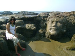 The Little Vagator area is further divided into three parts: Italian beach, Tel Aviv beach and the main strip. The first two are named after the nationalities that pretty much occupy the sands there. The beach is pretty sparsely crowded and is quite a ‘hidden’ beach so as to say! It has about 10 shacks on the coast and is filled with mostly Westeners. We went to the far end of the Italian Beach and found 4 lovely sun beds to settle on. As I told earlier, when we reach a beach, we settle! :)… The men went into the waters and we ordered beer and breezers… After a while, S and I decided to walk down the length of the beach to the farthest end. This, my friend, was almost a nude beach… very very sexy ladies (can give anyone a run for their money) …very very sexy men… and we also found some famous faces amongst them… At the farthest end was the rock carving of Lord Shiva and the carvings of the Cobra created around 4 years ago. An unknown foreigner from the Hippie Era carved these. They were beautiful carvings.