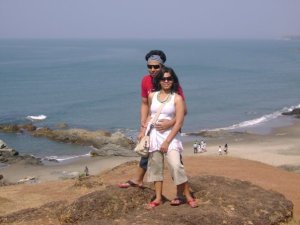 2nd January 2009 started early at 9 am. We dragged our groggy heads out of the bed and got ready to go to the beach!.. We had planned to go to Vagator and Small Vagator beaches, Chapora Fort and stop by at Candolim Beach on our way back.. We had hired a car for that day @ 1000/- per day. So we bundled up in our Alto and were off to Vagator. The routes in Goa are easy and we were there at Vagator within ½ hour. We were hungry and the grumblings in our tummy were stronger than the urge to settle on the beach… so we looked for a place.. We found nothing much at Vagator except for the beautiful view..